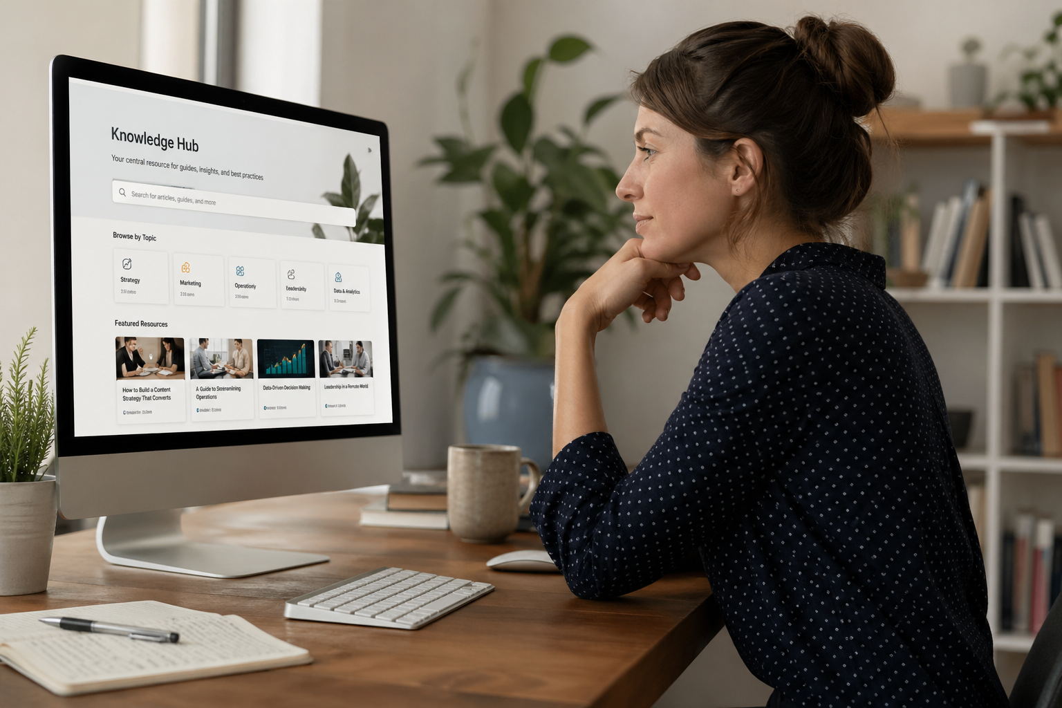 A Knowledge Hub is built around the opposite set of assumptions. Rather than organizing around when content was produced, it organizes around what users need to know and how they're likely to go looking for it.