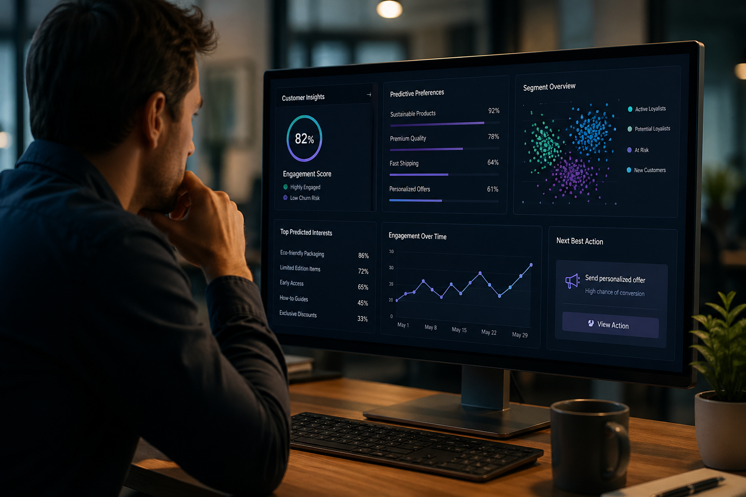 The at-risk customer profile looks different in every business. It might be declining email open rates combined with reduced purchase frequency. It might be a pattern of customer service contacts that predicts dissatisfaction. It might be competitive research behavior detected through intent data. AI identifies the specific combination of signals that precedes churn in your customer base — not a generic model, but a model trained on your actual data — and flags those customers for intervention before they've made the decision to leave.