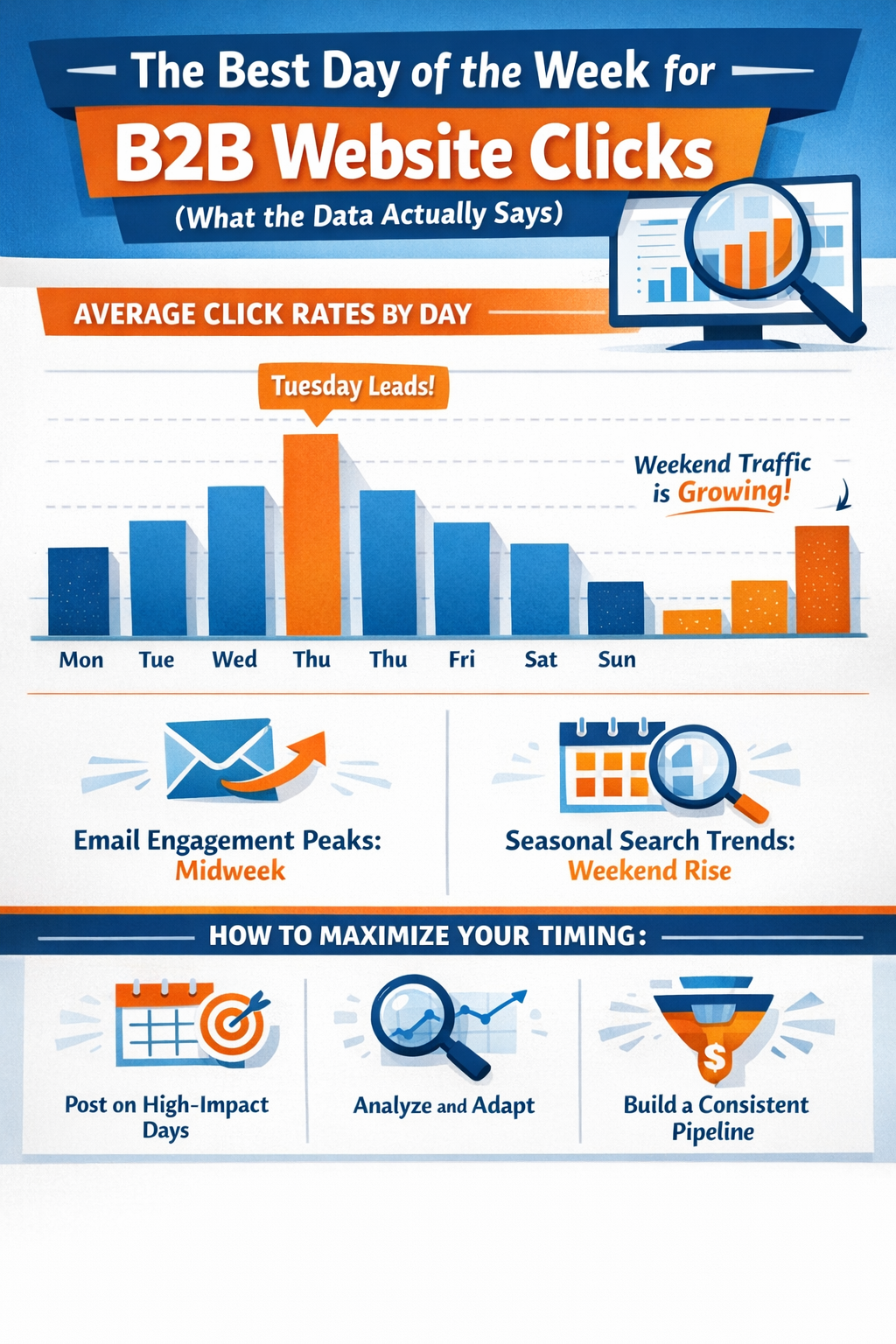 So let's do this properly. Let's look at what the data actually says — about web traffic, email engagement, buyer behavior, search patterns, and seasonal rhythms — and build a real framework for when B2B audiences are most likely to click, engage, and convert.
