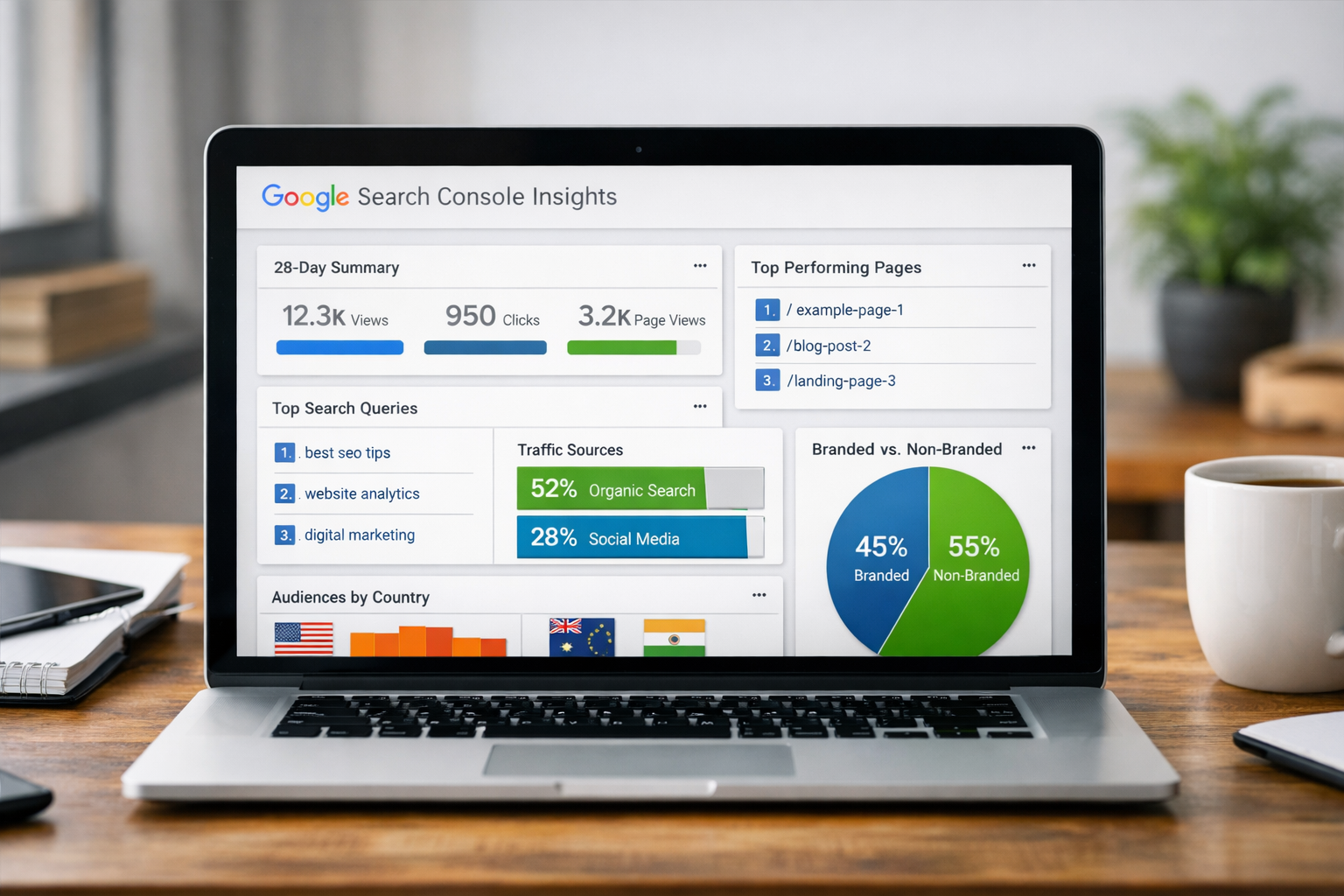 If you've ever logged into Google Search Console and clicked on the "Insights" tab, you've seen a dashboard that looks deceptively simple. A handful of numbers. A few top-performing pages. Some queries. A country breakdown. A branded versus non-branded traffic split.