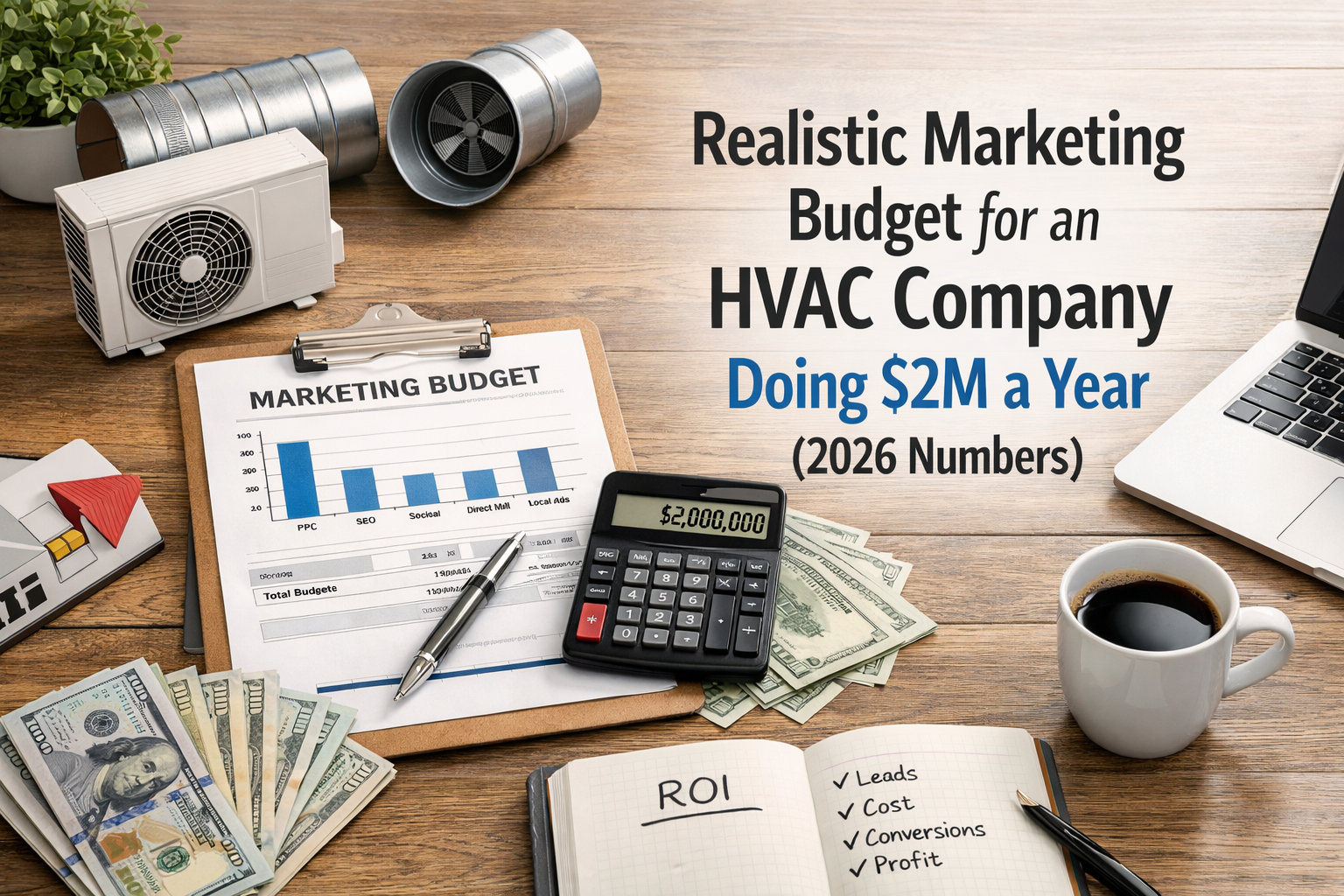 For an HVAC company doing $2 million in revenue, a realistic and defensible marketing budget is $140,000 to $200,000 annually — approximately 7 to 10 percent of revenue.
